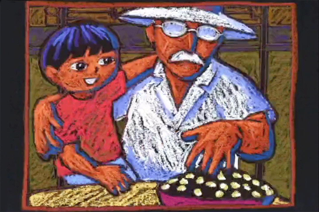 THE IDEA: PBSKids was launching a new campaign to promote caretakers reading to children. We’d seen a kid sitting on his grandpa’s lap and spun the story out of that. They wanted an “urban” feel (their word) and seeing chalk drawings on New York City sidewalks gave me the idea for the look. I still think this is a sweet little piece.